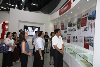調研組首先參觀了北京汽車產業研發基地“汽車型”沙盤、北汽集團概念車新能源車、北汽集團歷史文化展覽館和北汽造型設計研究中心。北汽集團黨委副書記、紀委書記李志立、副總經理孔磊、黨委常委組織部兼人力資源部部長高原等陪同參觀。