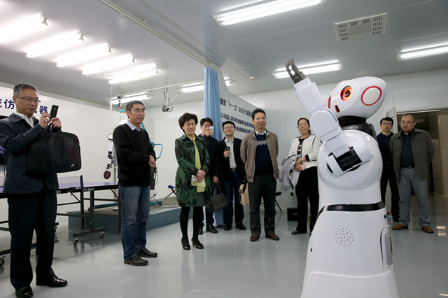 會(huì)前,陳向平一行參觀了北京理工雷科電子信息技術(shù)有限公司和仿人機(jī)器人高精尖創(chuàng)新中心,信息與電子學(xué)院院長(zhǎng)龍騰,機(jī)電學(xué)院副院長(zhǎng)韓峰陪同參觀。
