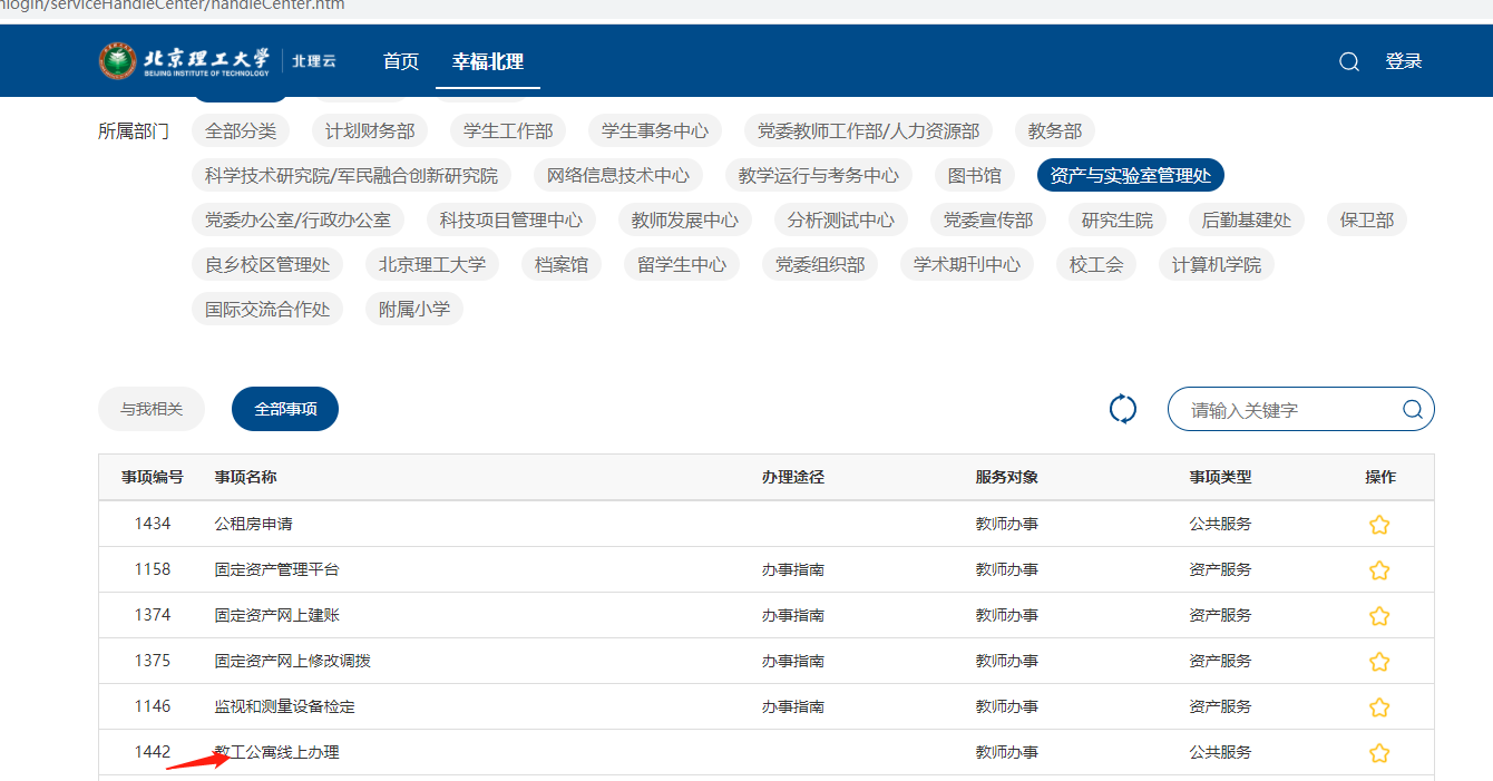 登錄校園網“幸福北理”,通過“教工公寓系統線上辦理”填寫博士后公寓租住申請表,資產與實驗室管理處和黨委教師工作部/人力資源部進行資格審查。
