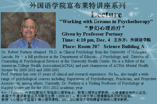 12月4日(周日)下午4:10,Dr. Robert Portnoy將在良鄉校區做有關心理治療的主題講座。
