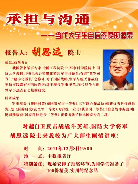 報告題目:承擔(dān)與溝通——當(dāng)代大學(xué)生自信態(tài)度的源泉