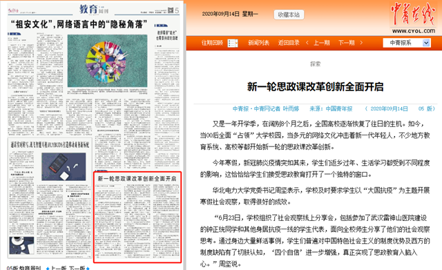 “6月23日,學校組織了社會觀察線上分享會,包括參加了武漢雷神山醫院建設的鐘正統同學和其他身居抗疫一線的學生代表,面向全校師生分享了他們的社會觀察思考。通過身邊大量鮮活事例,學生們普遍對中國特色社會主義的制度優勢及西方的制度缺陷有了切膚認知,‘四個自信’進一步增強,真正實現了思政教育入腦入心。”周堅說。