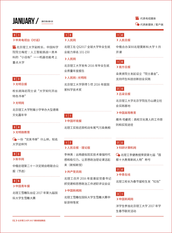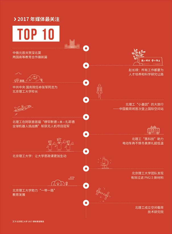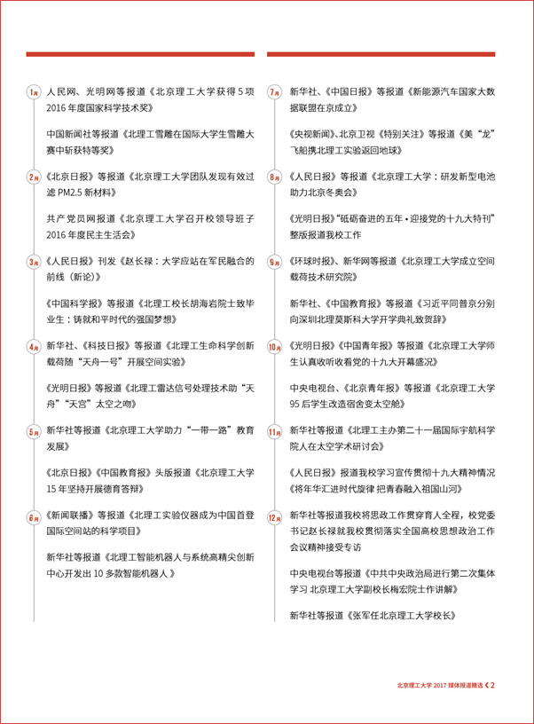 【編者按】“圍繞中心、服務大局、內聚力量、外樹形象”,北京理工大學黨委宣傳部始終堅持正面宣傳、堅持團結穩定鼓勁,堅持落實“兩個鞏固”的根本任務,牢牢掌握新聞輿論的主導權話語權,涵養化育一流大學文化,把新聞宣傳工作作為展示高等教育改革發展成就的重要窗口,加強對外宣傳工作的展示、塑造、公關、疏導、傳播和對接的功能。2017年,黨委宣傳部聚焦學校立德樹人根本任務和中國特色世界一流大學建設,統籌內宣外宣,主動設置議題,提升策劃能力,加強媒體溝通,推動社會媒體對北理工的正面報道長流水、不斷線,促進學校對外宣傳從平面媒體向多媒介轉變、從簡短報道向縱深報道轉變,進一步提升學校美譽度和影響力。