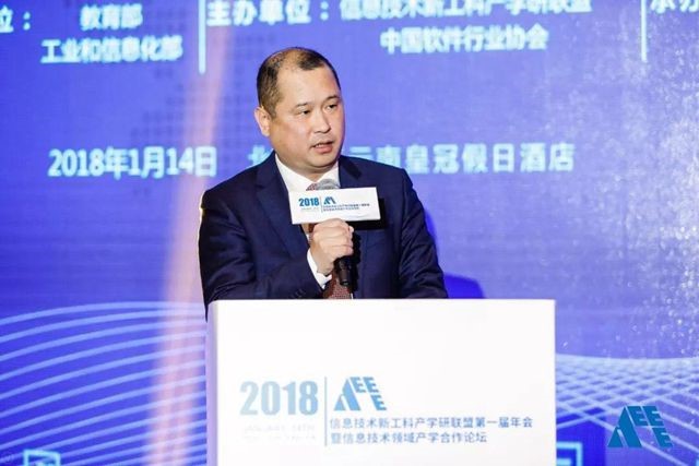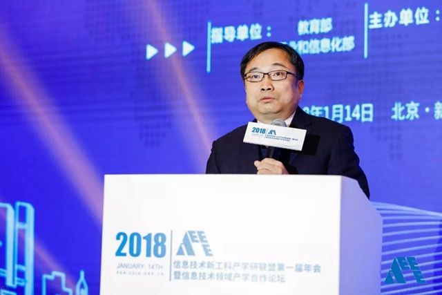 2018年1月14日,信息技術(shù)新工科產(chǎn)學(xué)研聯(lián)盟第一屆年會暨信息技術(shù)領(lǐng)域產(chǎn)學(xué)合作論壇在京召開,吸引了來自高校、科研院所、行業(yè)企業(yè)的1000余人參會。工業(yè)和信息化部信息化和軟件服務(wù)業(yè)司謝少鋒司長,教育部高等教育司林東偉副司長出席了開幕式。