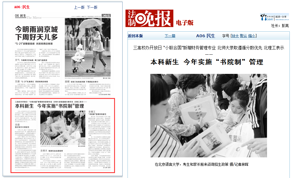 【法制晚報】北理工:本科新生 今年實施“書院制”管理