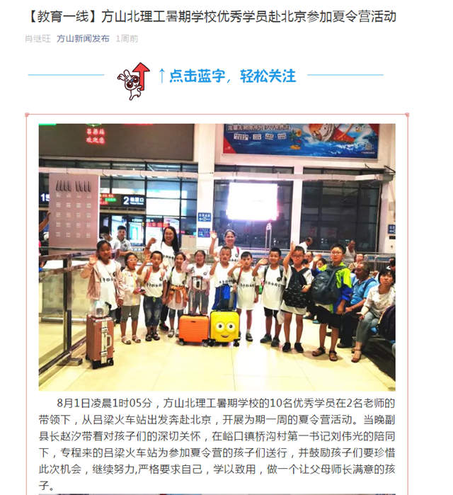【方山新聞】方山北理工暑期學校優秀學員赴北京參加夏令營活動
