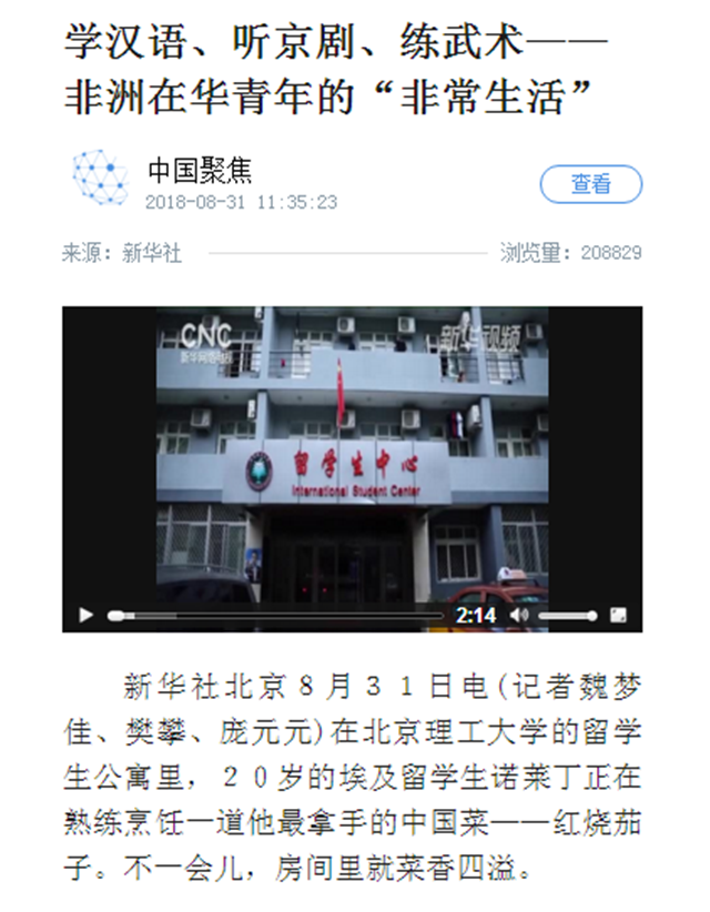 原文標題:學漢語、聽京劇、練武術——非洲在華青年的“非常生活”