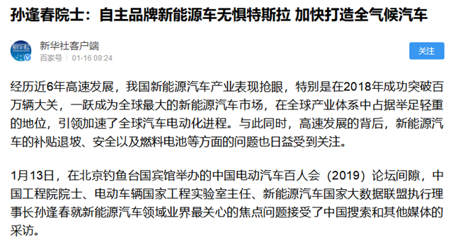 原文標題:孫逢春院士:自主品牌新能源車無懼特斯拉 加快打造全氣候汽車