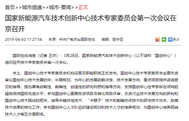 【央廣國際在線】國家新能源汽車技術(shù)創(chuàng)新中心技術(shù)專家委員會第一次會議在京召開