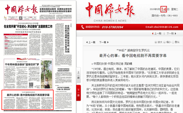 【中國婦女報】北理工“90后”越南留學生羅氏云最開心的事:看中國電視劇不再需要字幕