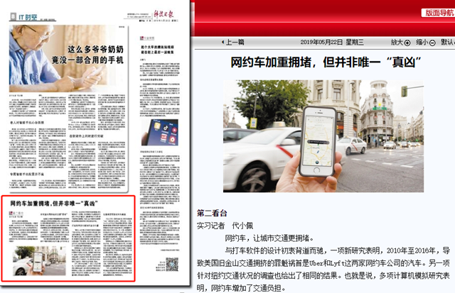 “事實上,在中國,打車軟件對城市交通造成了很大的沖擊?!遍Z懷志告訴科技日報記者,傳統出租車通常是人等車,而共享乘車大大加劇了車等人情況的出現。加之某些網約車為圖方便的違停,使得原本已擁擠的路況雪上加霜,甚至對公共交通也造成了很大影響。而且,選擇這種個性化出行方式,還會導致更多車輛在路上行駛,使原本已十分緊張的通行環境更加惡化。