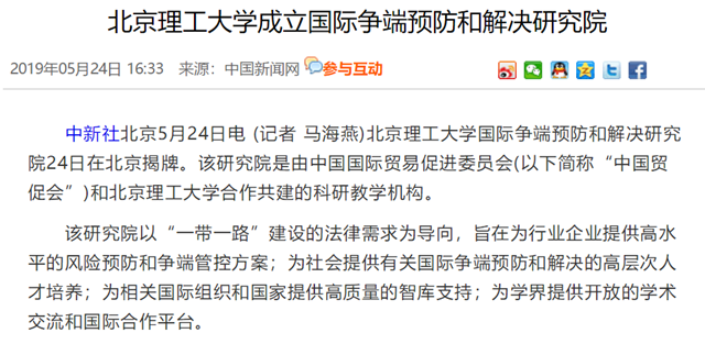 【中國新聞網(wǎng)】北京理工大學成立國際爭端預防和解決研究院