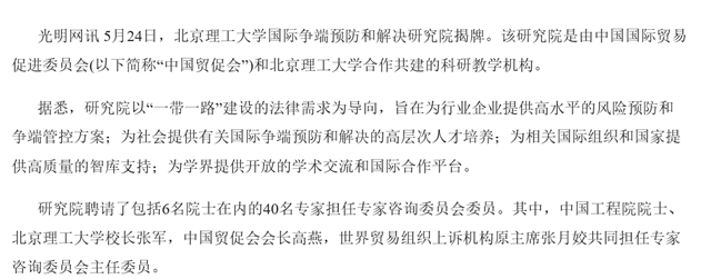 【光明網】北京理工大學成立國際爭端預防和解決研究院