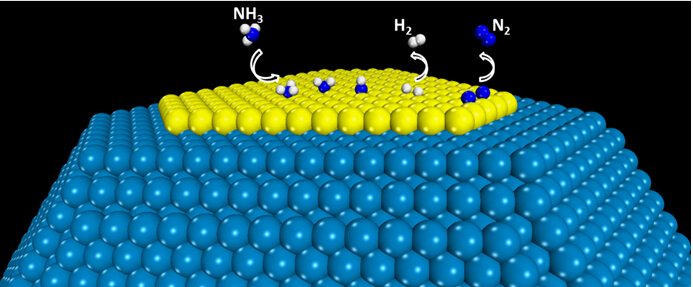 氨氣是一種重要的工業原料,被大量用于制造肥料,同時也是一種高效的儲氫載體。通過氨氣分解,能夠為燃料電池原位的提供無碳能源載體——氫氣。除此而外,氨氣分解的過程相對簡單,又具有對催化材料結構依賴性的特點,經常被用來做預測新型多功能催化材料性能的試金石。郭偉博士與Vlachos教授的研究表明,通過對鉑納米顆粒表面進行鎳原子亞單層修飾,能成功實現多功能催化:覆蓋在鉑納米顆粒上的亞單層鎳原子能有效分解氨氣,同時解離的氮原子擴散到鎳臺階邊緣進而脫附,釋放出無毒害的氮氣。而氫氣很容易從表面脫附,從而實現了無碳的氫氣釋放。事實上,這種亞單層的“缺陷”表面不但相對于完美的無缺陷表面有兩到三個數量級的性能提高,也具有更易于實驗合成的優點。該發現為材料設計開辟了新的可能性:科學家可以通過調控復合材料表面的形貌和成分,從而利用材料的不可避免的不完美性,以及不同組分的協同效應來完成各種復雜的反應。
