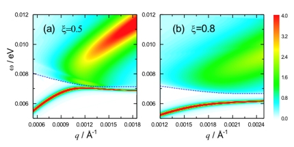 圖3:不同外場強度下等離激元的色散關系和相應能量損失函數