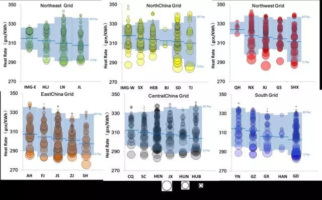 基于測算出的煤電機組燃料消耗率,本研究分析了2014年中國裝機容量超過1GW的所有煤電廠的機組發電效率與其年度運行小時數之間的相關性,發現有接近一半的省份的煤電機組處于低效運行的狀態,即機組的發電效率越高,年度運行時間反而越少。由此,佐證了中國電力系統運行的低效率和實施經濟調度機制的必要性。