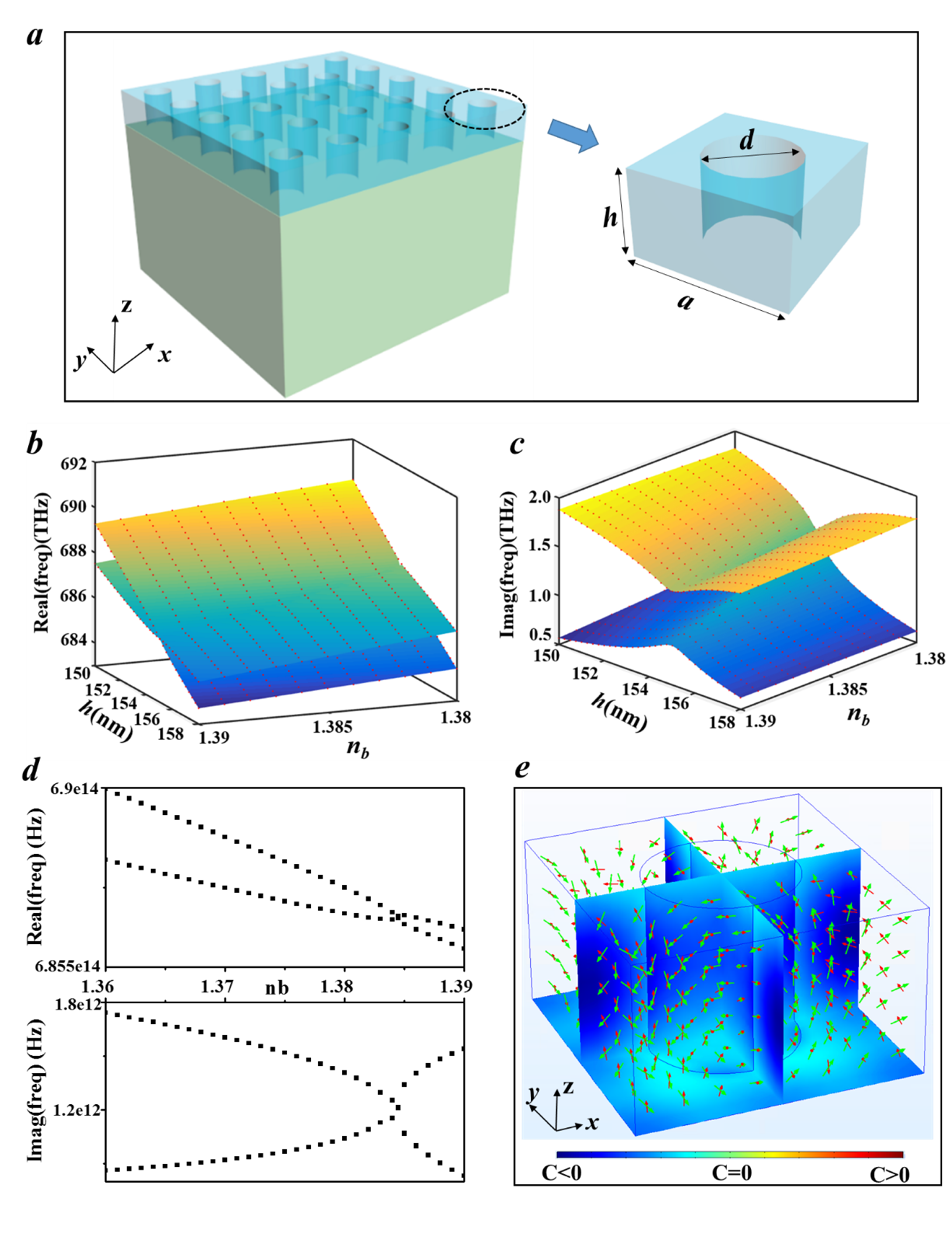 日前,北京理工大學物理學院張向東教授課題組基于光子晶體結構理論設計和實驗制備出了一種新類型的外點(exceptional point), 可以被稱作輻射矢量外點。不同于以前外點的構造方式,他們構造出的外點由一對正交極化模式形成,具有矢量特征。這種類型的外點能夠產生超強的手征光場,可用于分子手性超敏感探測。相關研究成果發表在近期的《物理評論快報》【Phys. Rev. Lett. 124, 083901 (2020)】上,該工作得到了國家自然科學基金委和國家重點研發計劃的資助。博士生吳桐和張蔚暄負責理論方面的內容,博士后張慧珍負責樣品制備和測量方面的工作,他們為共同第一作者,張向東教授為通訊作者。博士生候賽賽和陳光遠也參與了一些實驗測量方面的工作。在完成這項工作的過程中得到了物理學院劉瑞斌教授、路翠翠特聘副研究員、李家方教授和王榮瑤教授的幫助,同時也得到了合作單位中科院物理所李俊杰研究員、復旦大學資劍教授和石磊教授課題組以及國家納米科學中心段鵬飛研究員的幫助。
