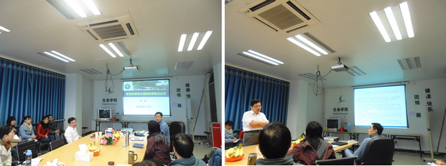 首先,李元廣教授分別從多粘類芽孢桿菌和海洋芽孢桿菌兩類產品向大家展示了新型微生物殺菌劑的創制及產業化。接著,又帶來了關于“生物燃料—藻類能源”的報告,李元廣教授的匯報生動而詳實,在會師生十分感興趣,提出了很多有價值的問題。李春教授根據李元廣教授的匯報內容,發現有研究交叉的地方,便帶來了“耐鹽防病促生菌劑的研制與應用”的匯報,將整個會議推向了高潮。