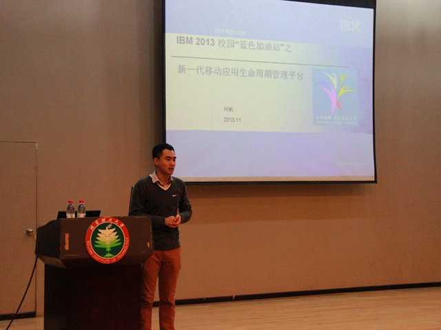 2013年12月21日,由學院分團委主辦的名為“新一代移動應用生命周期管理平臺”的專題講座在七號樓報告廳舉行。來自IBM中國開發實驗室 Rational高級工程師何帆老師為同學們講解了新一代移動應用的相關知識,并就如何打造自己的移動應用做了相關經驗介紹與指導。