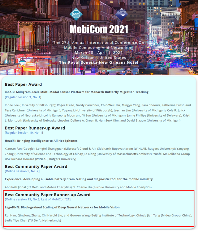 近日,CCF-A類頂會ACM MobiCom 2021宣布最佳論文獎項...