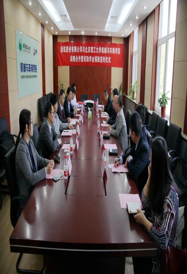 會上,北理工機械學院與成都新筑股份公司簽署了戰略合作框架協議和新筑獎助學金合作協議。雙方表示,希望通過此次合作,以新筑路橋在新能源汽車領域的產業化能力為依托,以北理工在新能汽車領域的先進技術為支撐,推動雙方在科學研究、人才培養、產學研基地建設等多領域的深度合作,促進雙方共同發展。