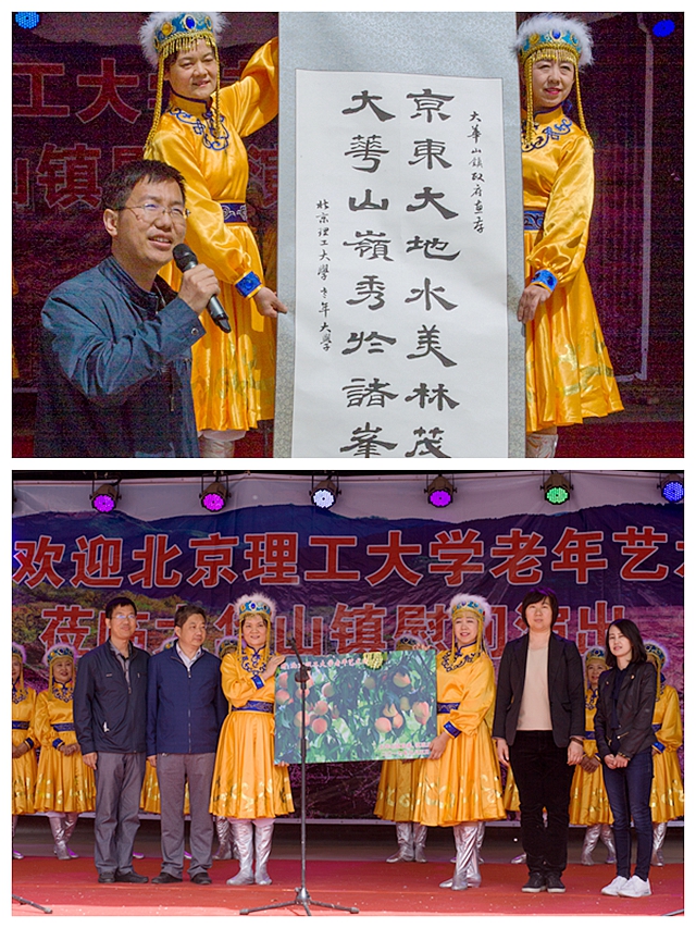大華山鎮與北京理工大學老年大學藝術團互贈了紀念品。