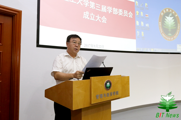 常務副校長楊賓宣讀了第三屆學部主任、副主任以及學部委員名單。研究生院副院長、學部辦公室主任肖文英介紹了《北京理工大學關于學部運行制度的意見》的文件。