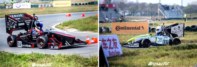 內(nèi)燃機(jī)方程式賽車——黑鯊以163kg的“最輕賽車”和1分49秒的“最快單缸”驚艷亮相,但是天公不作美,黑鯊以高避第八名最后一天發(fā)車,卻遇上襄陽(yáng)的雨天,不慎滑出泥濘濕滑的賽道,最終由于啟動(dòng)機(jī)線路故障而未能在規(guī)定時(shí)間內(nèi)返回賽道,未能取得分值最重的耐久賽成績(jī)。純電動(dòng)方程式賽車——銀鯊在之前的靜態(tài)項(xiàng)目中獲得了成本與制造分析第二名,但在最后一天的比賽中也因?yàn)樗Τ鲑惖蓝z憾未能完賽。
