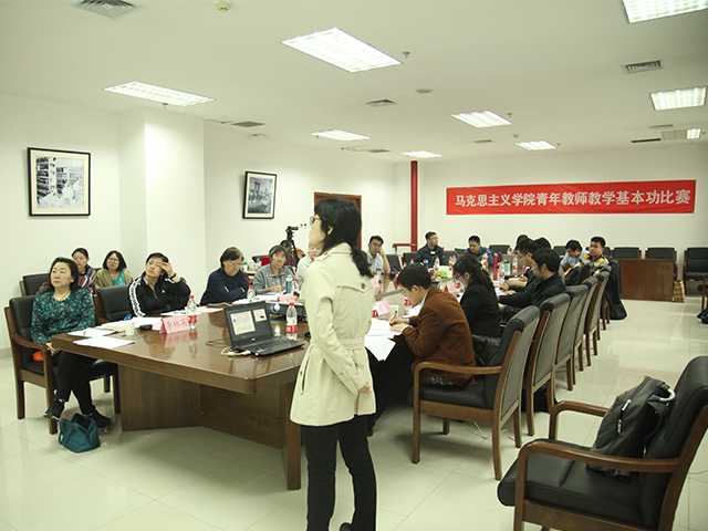 為選拔優(yōu)秀青年教師,為后續(xù)北京市青年教師教學(xué)基本功比賽做準(zhǔn)備,促進(jìn)青年教師教學(xué)能力和水平的提升,提高人才培養(yǎng)質(zhì)量水平,4月21日,馬克思主義學(xué)院2018年度青年教師教學(xué)基本功比賽在徐特立圖書館626會(huì)議室成功舉辦。本次比賽由馬克思主義學(xué)院副院長郭麗萍主持,中央財(cái)經(jīng)大學(xué)院長助理、副教授謝玉進(jìn)、北京科技大學(xué)副教授穆阿妮、學(xué)校督導(dǎo)組專家宋桂芝和楊亞非、馬克思主義學(xué)院教學(xué)指導(dǎo)委員會(huì)成員參加會(huì)議,江大偉等12位青年老師參賽。