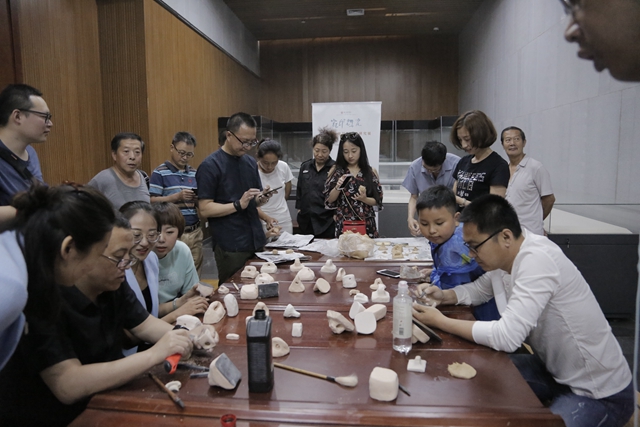 開幕式上還舉行了項目圖書《 瓷印輝光——當代陶瓷印創(chuàng)作生態(tài)研究展·當代陶瓷印藝術(shù)作品集》的新書發(fā)布儀式,王東聲教授就畫冊編輯工作作了介紹,并宣布新書首發(fā)。另外,為了更好地服務社會,組委會特別安排了陶瓷印公益性現(xiàn)場體驗單元,很多觀眾興致勃勃地參與其中。