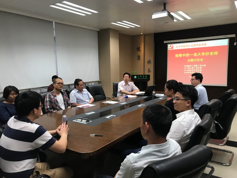 6月12日,按照高校思政工作難點攻關計劃試點有關要求,承擔“創新師生互動平臺”項目的生命學院生物醫學工程系黨支部在五號教學樓712會議室召開了“我眼中的一流大學好老師”主題討論會。生命學院黨委書記劉存福、副院長唐曉英,生物醫學工程系教師黨員,2017級研究生第二黨支部全體黨員及本科生黨支部部分黨員及積極分子30多人參加研討。會議由生物醫學工程系黨支部書記徐遠清主持。