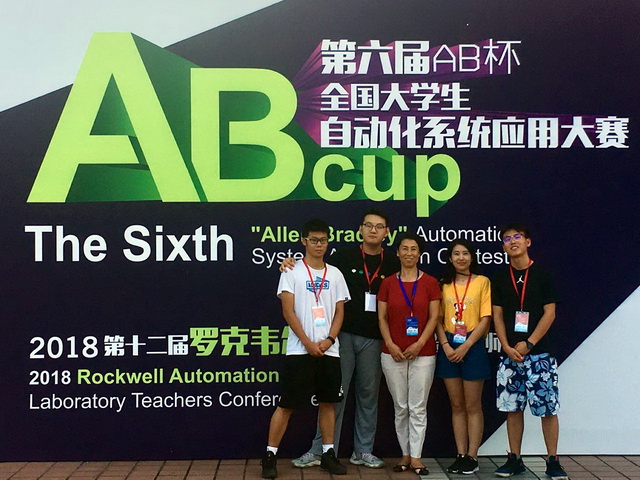 “AB杯”全國大學生自動化系統應用大賽是由教育部高等學校自動化類專業教學指導委員會主辦的自動化應用領域的創新型競賽。本次大賽以羅克韋爾自動化公司旗下的工業以太網、集成運動控制和集成安全的中型控制系統為核心平臺,以學生實際動手操作和自主研究、探討機器安全解決方案為競賽形式,考核學生的自主研究、系統設計、實際操作、分析調試能力。我校參賽學生在指導老師的指導下,反復模擬演練,做了充分的前期準備;在決賽中,表現從容鎮定,基礎操作和現場發揮都得到組委會和羅克韋爾公司的認可和好評。