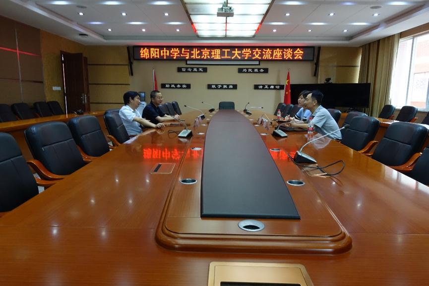 自動化學院一行隨后走訪了綿陽中學,與分管招生工作副校長及招辦主任開展交流座談,金軍表示,綿陽中學歷史悠久,文化底蘊濃厚,長期以來為我校輸送大量優質生源,僅2018年就有16名學子考入北理工,感謝綿陽中學師生的信任與支持。隨后金軍與副校長陳治國就兩校在未來可交流合作的形式及內容進行了探討。