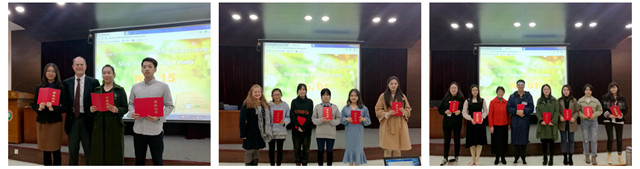 選手們慷慨激昂的演講和緊張的提問環節使得現場的氣氛緊張而熱烈。評委們依據選手的語言基本功、演講激情和臺風、演講內容及回答問題等環節給予綜合評價。經過緊張而激烈的角逐,本次比賽共決出一等獎3名,二等獎5名,三等獎7名。