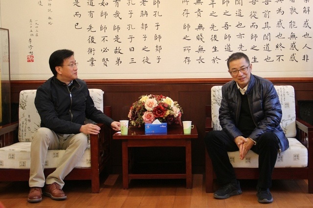 講座開始前,馬景林與丁剛毅一行進行了親切會談。馬景林代表全校師生熱烈歡迎丁剛毅一行人的到來,他充分肯定了北理工的辦學特色、科研水平、卓越成就以及對國防事業的重大貢獻,同時希望進一步加強兩校合作。丁剛毅贊揚了北京四中的悠久歷史和卓越的辦學成績,對作為“北京理工大學優秀生源基地”的北京四中表示感謝,并希望北京四中能培育出更多的優秀學子,為新時代建功立業。