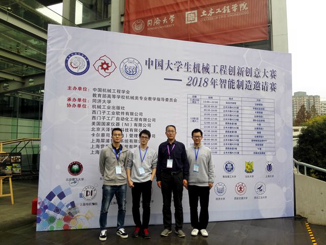 12月1日至2日,中國大學生機械工程創新創意大賽2018智能制造邀請賽在同濟大學舉行,來自北京理工大學、同濟大學、上海交通大學、西安交通大學、西北工業大學、東北大學等全國17所高校的30支代表隊參賽,同場比拼“智能制造”創新創意。我校由李雅軒、陳西、朱明仁組成的參賽隊伍在指導教師機械學院蘇偉的帶領下,取得了一等獎的優異成績。