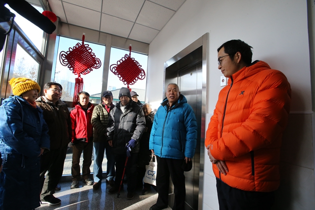 “電梯很平穩,也基本沒有噪音”!“以后有了電梯,來遠志樓參加活動就方便啦”!正在遠志樓活動的離退休老同志們紛紛下樓,試乘體驗剛剛啟用的電梯。