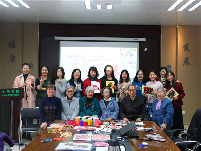 3月8日是第109個國際婦女節,為了豐富女教職工群體的業余生活,經過積極準備,生命學院工會和離退休工作處工會共同策劃了本次手工制作活動,6位退休教師手工制作愛好者,指導年輕女教師開展剪紙、編繩、發飾的制作?;顒釉谏衔缡c半準時開始,指導老師首先向大家展示了精美的手工作品,講解了制作工具的使用方法,并現場示范講解制作流程。本次活動突出參與體驗,希望教職工們可以在動手制作的實踐過程中,進一步增進了解,加強溝通交流。參加活動的教師們學習認真,興致盎然,經過兩個小時的認真制作,一件件精美的手工作品便栩栩如生地呈現在眼前。