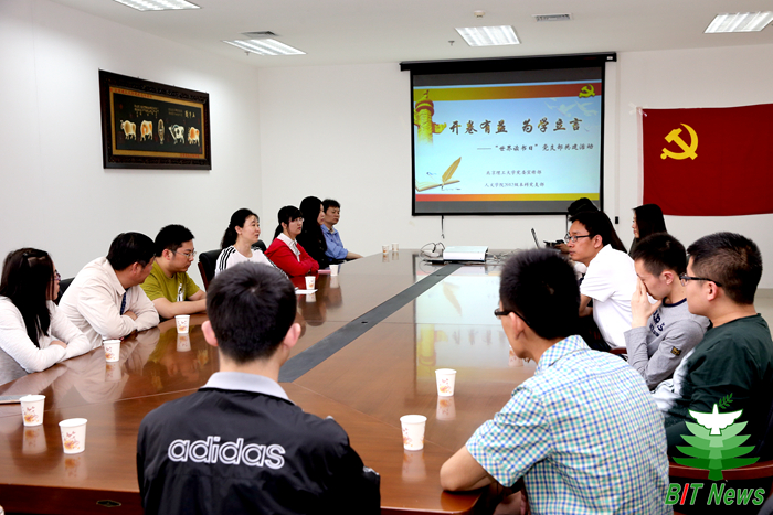 包麗穎老師在會上與學(xué)生們分享了自己的讀書體會。她認(rèn)為,閱讀之于人的修養(yǎng)相當(dāng)于花草需要養(yǎng)分的滋養(yǎng)。她結(jié)合“北理情、北理夢、中國夢”的校慶主題與在座的黨員同志分享了自己的感受,她認(rèn)為兩支部黨員們應(yīng)該在以下三方面繼續(xù)努力,加強(qiáng)理論修養(yǎng)。一是要堅持夢想,為實現(xiàn)中國夢努力奮斗。二是要將社會主義核心價值觀作為個人、支部行動的指南,充分發(fā)揮黨員的先鋒模范帶頭作用和黨支部的戰(zhàn)斗堡壘作用。三是要努力讀書,獲取正能量,提高人文素養(yǎng),充分展現(xiàn)“花開人文、氣韻北理”的情懷。