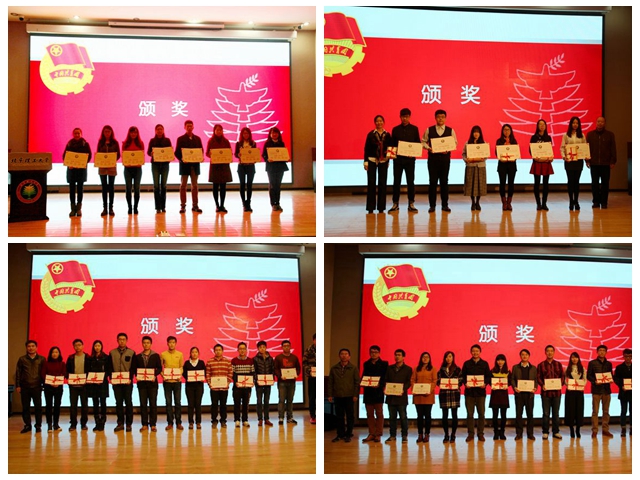 會上,校團委副書記茍曼莉作2015年寒暑假學生社會實踐工作總結。校長助理郝志強宣讀了表彰決定。經過網絡投票、現場答辯、專家評審等多個環節,并結合發團率計算寒暑假組織分和實踐分數,授予基礎教育學院機械與運載學部等8個單位“先進工作單位”稱號,授予信息與電子學院明圓支教團等6個實踐團隊“品牌團隊”稱號,授予機電學院赴四川達州社會實踐團等85個實踐團隊“優秀實踐團隊”稱號,授予姜曼等27名同志“先進工作者”稱號,授予盛筠等27名老師“優秀指導教師”稱號,授予岳夢坤等120名同學“優秀實踐團員”稱號。與會領導為受表彰的師生頒獎并合影留念。