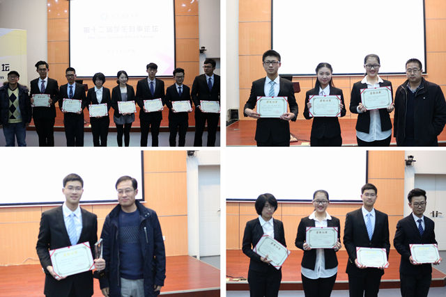 最終,楊爽獲得北京理工大學第十二屆學生時事論壇“壇主”稱號,丁筱穎、李崢、陽洪宇獲得一等獎;岳孟坤等7名選手獲得二等獎;劉騏、楊爽、丁筱穎、蘇天楚分獲最佳表現獎、最具深度獎、最佳視角獎、最具人氣獎。隨后的頒獎儀式上,各位評委分別為上述獲獎選手及機電學院任禹名等9名獲得三等獎的選手頒獎。