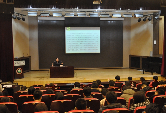 李偉教授結(jié)合中國(guó)面臨的世情、國(guó)情、黨情的變化,為在座的老師和同學(xué)們深入淺出地解析了習(xí)近平總書記治國(guó)理政的頂層設(shè)計(jì)和總體規(guī)劃,闡明了在新時(shí)期學(xué)習(xí)宣傳貫徹習(xí)近平總書記系列重要講話精神的歷史背景和現(xiàn)實(shí)意義。他指出,中國(guó)仍處于中等收入陷阱的邊緣,這是一個(gè)不可避免的社會(huì)發(fā)展階段。習(xí)近平總書記系列重要講話精神集中了全黨和全國(guó)人民的智慧,深刻回答了在新的歷史條件下黨和國(guó)家發(fā)展的現(xiàn)實(shí)問題,提出了很多新思想、新觀點(diǎn)、新論斷、新要求,是中國(guó)在新的歷史起點(diǎn)上實(shí)現(xiàn)新的奮斗目標(biāo)的基本遵循和科學(xué)指南。