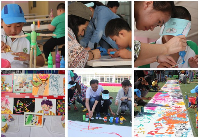 安華學(xué)校是一所培智學(xué)校,這里的孩子有不同程度的智力發(fā)育缺陷,在為期兩天的活動(dòng)中老師同學(xué)開(kāi)展了豐富多彩的繪畫(huà)支教活動(dòng)中,師生們通過(guò)指導(dǎo)和幫助他們以扇面、書(shū)法、折傘、石膏魚(yú)、兔爺、木偶、臉譜、粘紙、沙畫(huà)等為媒介創(chuàng)作繪畫(huà),來(lái)開(kāi)啟智障兒童智慧,引領(lǐng)他們用藝術(shù)的方式表達(dá)情感、熱愛(ài)生活。 活動(dòng)中,學(xué)院黨支部與安華學(xué)校共同策劃了繪制美麗校園長(zhǎng)卷環(huán)節(jié),引導(dǎo)孩子們?cè)陂L(zhǎng)達(dá)16米的畫(huà)布上開(kāi)始作畫(huà)。孩子們盡情揮動(dòng)手中的畫(huà)筆,去肆意地描繪心中的美,孩子們天真的笑臉感染著在場(chǎng)的每一個(gè)人。
