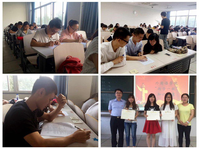 6月7日,本科生黨支部舉辦“兩學一做”專題知識競賽,每個班以及黨支部均派出三人隊伍參賽。競賽采取“20分鐘閉卷作答+10分鐘開卷作答”的形式,從16支隊伍中決出一、二、三等獎,并最終推舉出一支隊伍代表學院參加全校比賽。知識競賽的開展鞏固了黨章黨規的學習成果,以賽促學,以知促行,展示了外國語學院學生黨員的良好風貌。