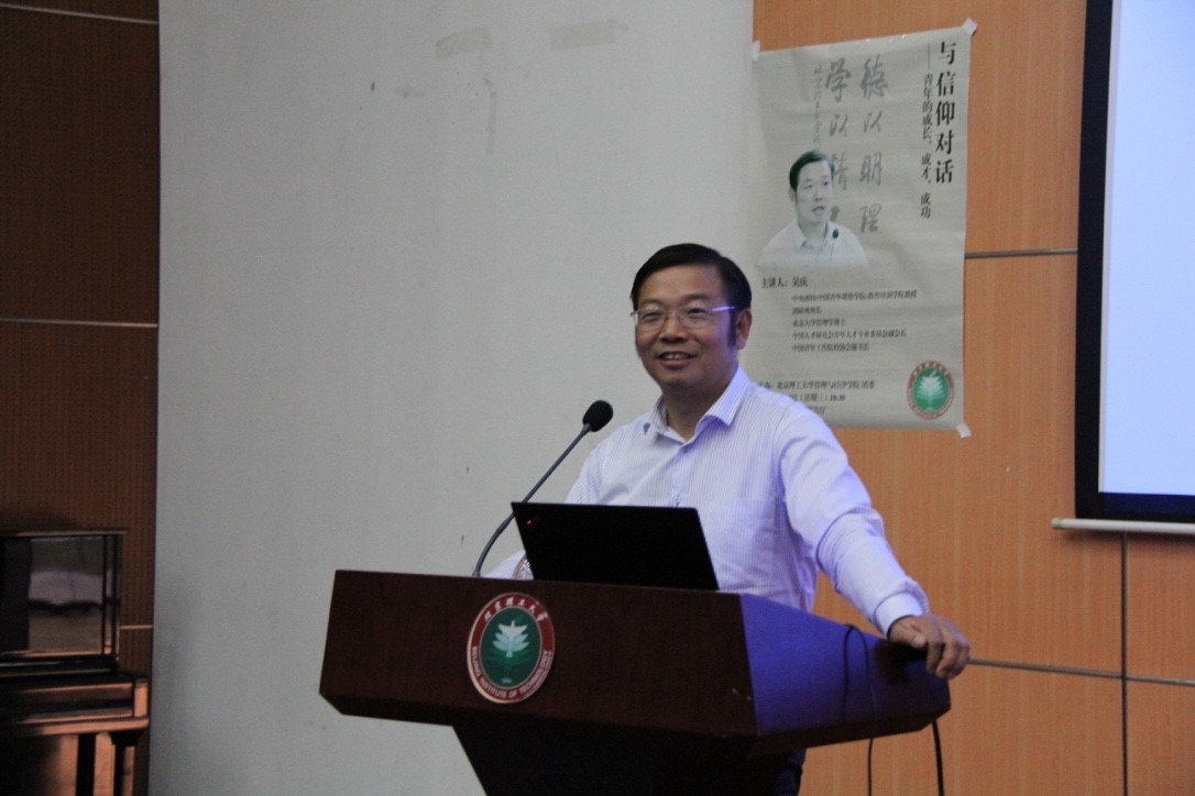 2017年4月19日下午六時,由北京理工大學管理與經濟學院團委主辦的主題團課“與信仰對話——青年的成長、成功與成才”在良鄉校區綜合教學樓報告廳順利舉行。本次團課主講嘉賓為中國青年政治學院(中央團校)共青團工作理論研究所所長吳慶。管理與經濟學院團委書記張瑞,2014級輔導員賈一寧出席本次團課,管理與經濟學院大一至大三全體學生團干部到場聆聽。