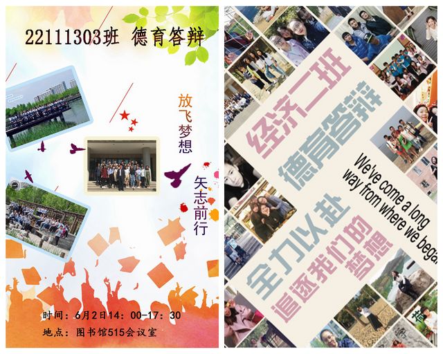 22111301班的德育答辯主題為“青春不散”。同學們在展示中或回顧四年大學生活,或分享保研、考研和找工作的經歷,或憧憬未來美好的生活,或表達對老師、朋友、學院和學校的不舍。班主任陳秀梅老師對同學們的答辯內容進行了總結,對未來同學們學習生活提出了努力不負青春的希望。22111302班的德育答辯主題為“全力以赴,追逐我們的夢想”。人文學院黨委副書記李冰老師參與答辯,他結合自己的學習和工作經歷與同學們交流了關于大學學習生活的感悟,表達對同學們的祝福。德育答辯中班級播放了同學們在大學各個時期的個人照和合影為線索的回顧視頻。個人展示環節,同學們用各自的方式和言語表達對大學生活的感悟。班主任吳建民老師在總結中肯定了同學們四年的付出和成績,也表達了他對同學們未來工作、學習和生活的祝愿。22111303班的德育答辯主題為“放飛夢想,矢志前行”。答辯過程中播放了由經濟三班集體活動的照片制作而成的視頻,反映了大家的精彩大學生活。同學們追憶往昔、展望未來,答辯會在溫馨和睦的氛圍中進行。最后班主任張雷老師肯定同學們做到了德育開題時其對同學們提出的兩個“成”——心智成熟,專業成長,并期待同學們在未來實現第三個“成”——領域成功。22121301社會工作班的德育答辯同學們從照片中回憶往昔,在分享中暢談未來。一部分同學講述了自己與其他同學之間的友情,回顧一起走過的歲月;一部分同學分享了自己的收獲:知識、經驗、一份夢想成真,讓在場同學體味到匆匆時光中的苦辣酸甜;還有部分同學表達了對老師諄諄教誨的感謝,對同窗苦樂相伴的感謝。輔導員孫碩在點評中肯定了班級同學積極向上和團結協作的精神。最后,班主任鄭佳然老師對同學的答辯進行了點評,并贈送了親手制作的小禮物。