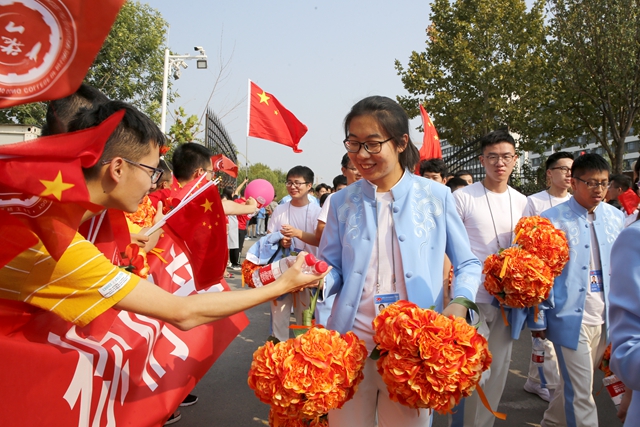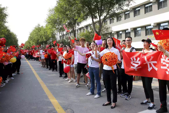 下午1點半,在良鄉校區南北門口,五星紅旗迎風飄揚,近700名師生代表排列成整齊的隊伍,等待群眾游行隊伍載譽而歸。下午2時許,群眾游行隊伍陸續抵達學校。當大家走進校門口時,歡迎隊伍手拿“熱烈歡迎北理工學子圓滿完成國慶群眾游行任務,勝利凱旋!”“壯麗70年,奮斗新時代!”等大幅標語,揮舞著國旗、彩色的氣球和鮮花,熱情洋溢、跳躍歡呼,高喊“歡迎凱旋!”“祖國萬歲!”等口號,夾道歡迎群眾游行隊伍勝利凱旋。