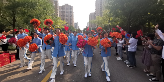 北京理工大學師生迎接群眾游行隊伍凱旋