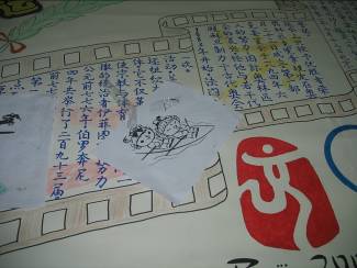 活動一確立下來,大家就明確分工,利用課余時間采購材料、工具;查找相關(guān)資料并做出篩選;設(shè)計板式處理圖片,利用晚上的時間齊聚三號樓地下室開始我們的制作過程。雖然環(huán)境簡陋,卻絲毫不能分散工作時的注意力。大家一齊上陣,邊寫邊畫,好不熱鬧。