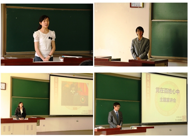 2012年5月15日,一場主題為“黨在百姓心中”的宣講會在良鄉理教101教室舉行。參與本次宣講會的有信息學部和文科學部的部分同學,信息學部輔導員王兆宇老師也作為嘉賓應邀出席。宣講會請到了北京理工大學京工演講團的五位同學,由他們擔任宣講員。他們的演講或慷慨激昂,或鮮活生動,通過一個個榜樣的事跡,樹立了黨在大家心中的形象。